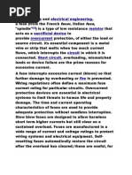 and destroyed by the current passing through it. A fuse contains a current- carrying element sized so that the