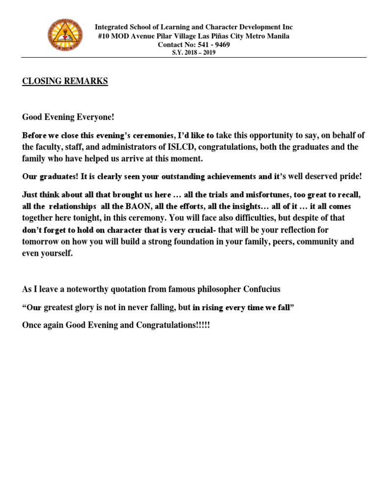 the faculty, staff, and administrators of ISLCD, congratulations, both the graduates and the