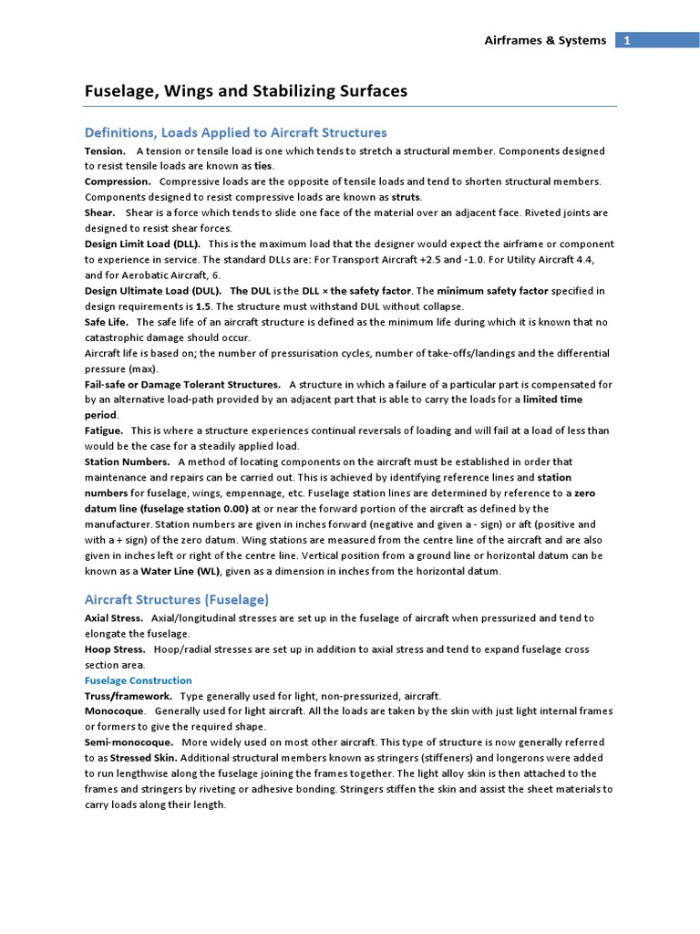 Aircraft Structural Loads and Materials