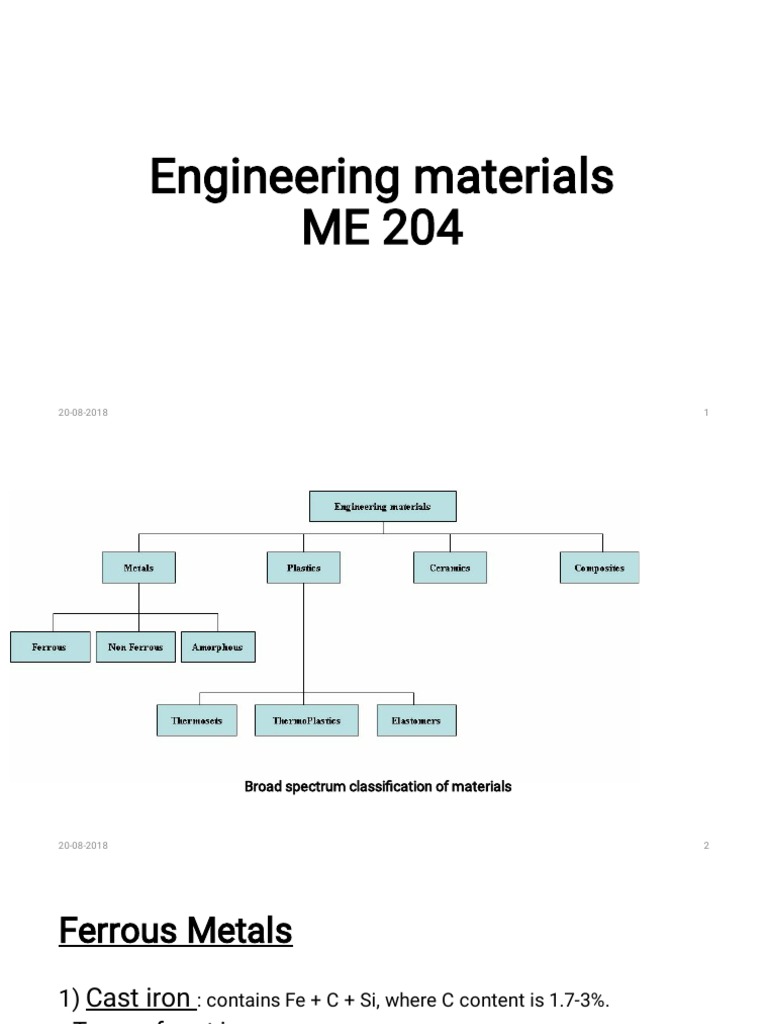 1) Cast iron : contains Fe + C + Si, where C content is 1.7-3%.