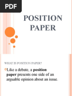 A position paper is a kind of academic writing in which the student researches a controversial issue and writes a