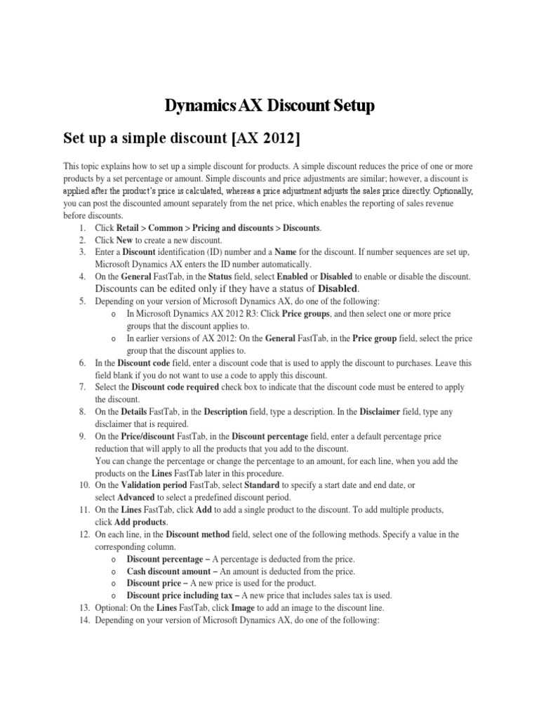 Dynamics AX Discount Setup