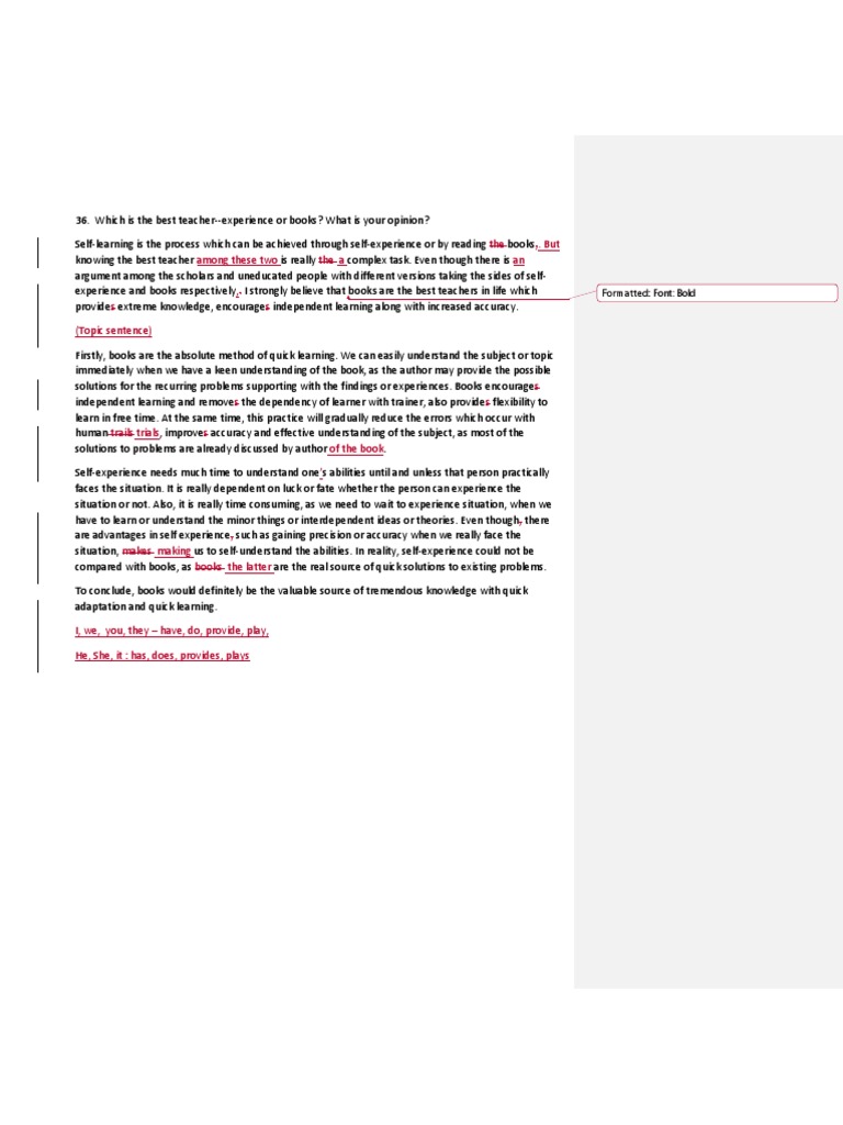 experience and books respectively,. I strongly believe that books are the best teachers in life which Formatted: Font: Bold