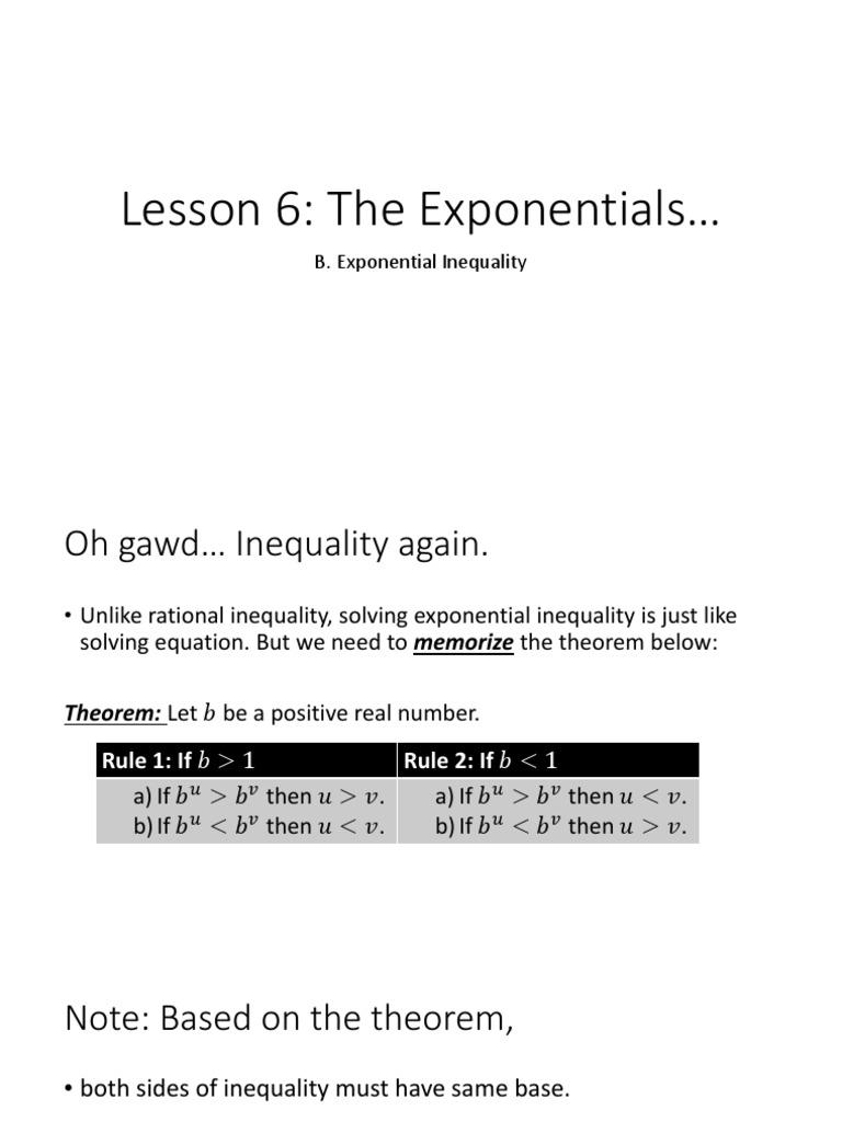 a) If 𝑏 𝑢 > 𝑏 𝑣 then 𝑢 > 𝑣. a) If 𝑏 𝑢 > 𝑏 𝑣 then 𝑢 < 𝑣.