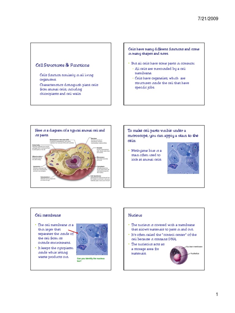 Here is a diagram of a typical animal cell and To make cell parts visible under a