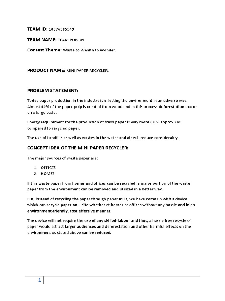 environment. This will help in the promotion of the idea of recycling used paper as