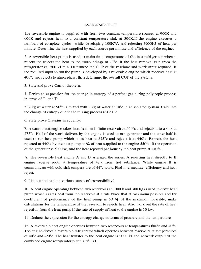 1.A reversible engine is supplied with from two constant temperature sources at 900K and