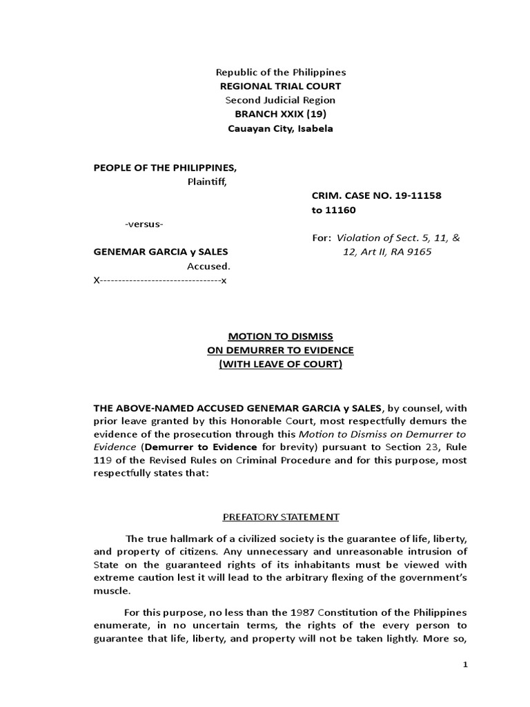 Evidence (Demurrer to Evidence for brevity) pursuant to Section 23, Rule