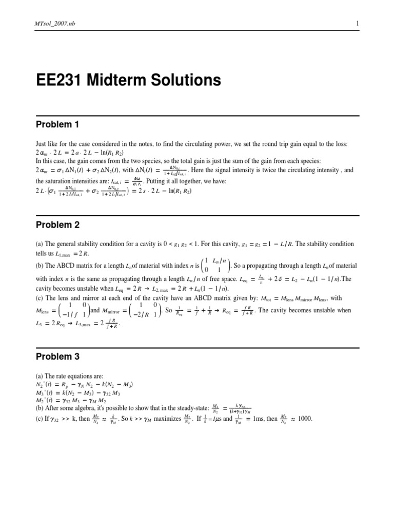 EE231 Midterm Solutions