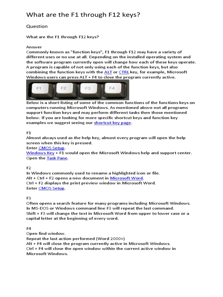 Commonly known as "function keys", F1 through F12 may have a variety of