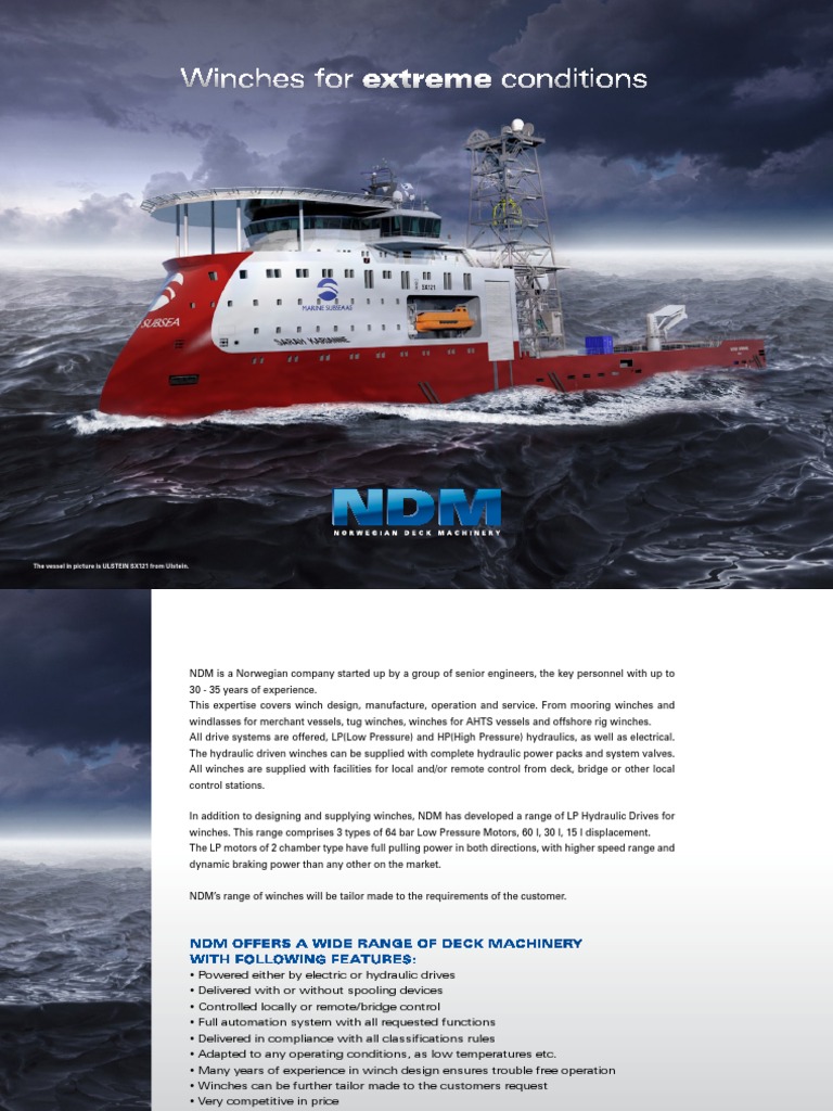 NDM’s range of winches will be tailor made to the requirements of the customer.