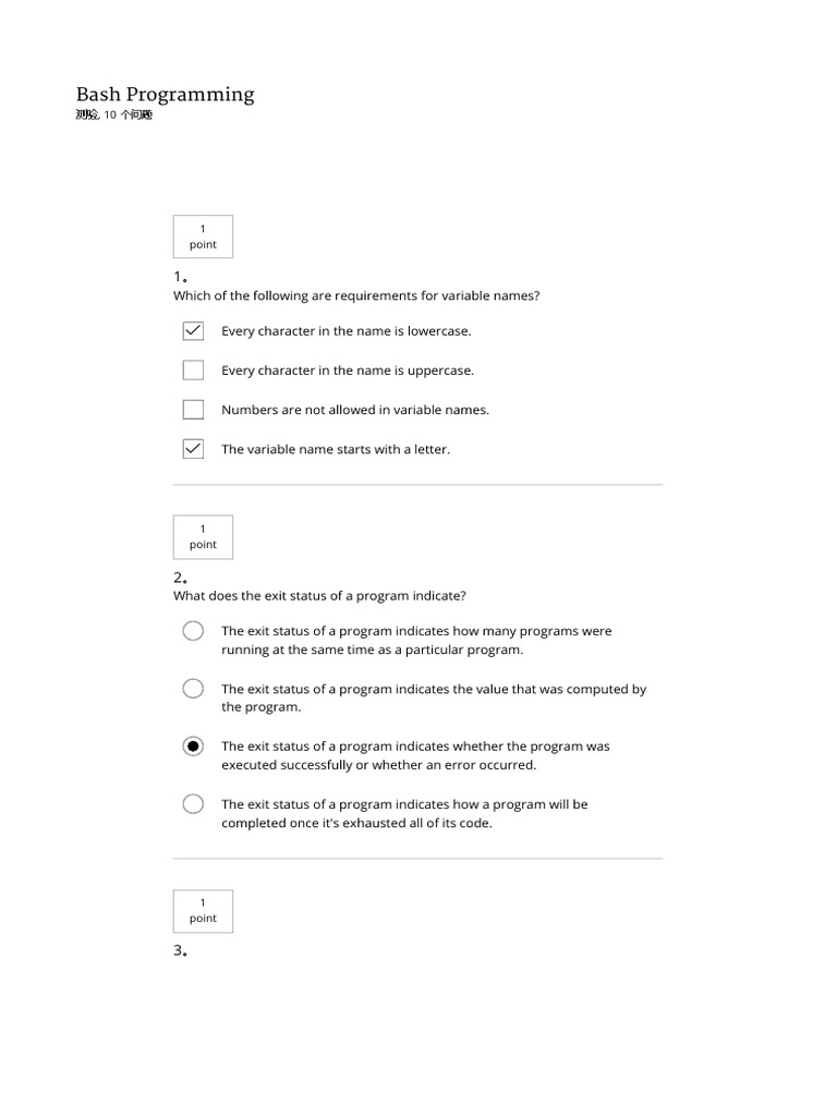 测验, 10 个问题 1 #!/usr/bin/env bash