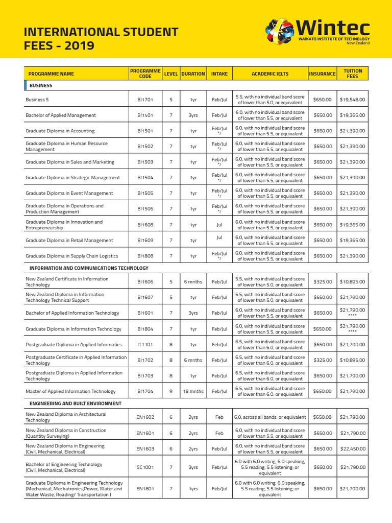 is subject to change without notice. Wintec (Waikato Institute of Technology) will not accept liability for any errors or omissions contained in this brochure nor for any subsequent actions that