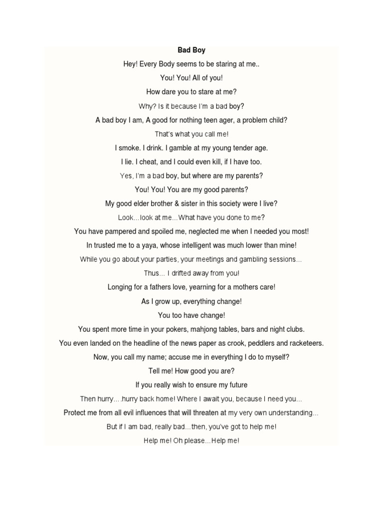 A bad boy I am, A good for nothing teen ager, a problem child?