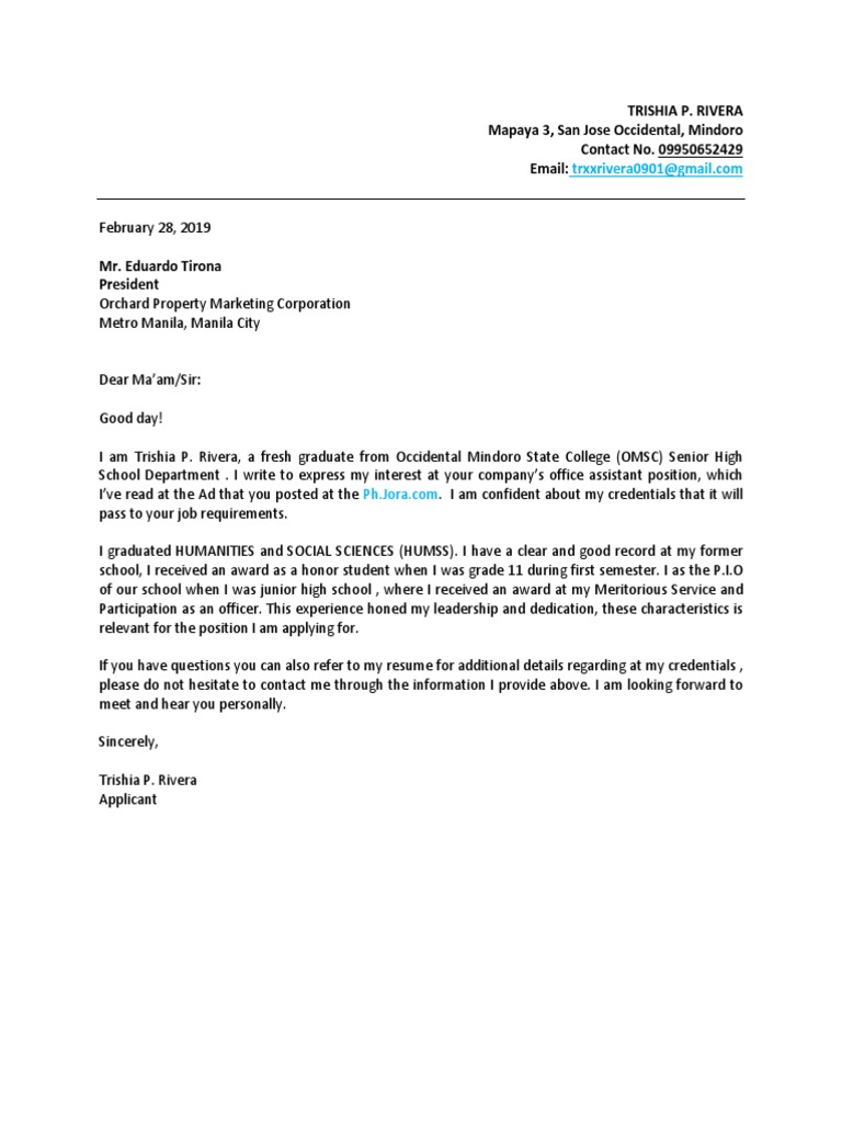 I graduated HUMANITIES and SOCIAL SCIENCES (HUMSS). I have a clear and good record at my former