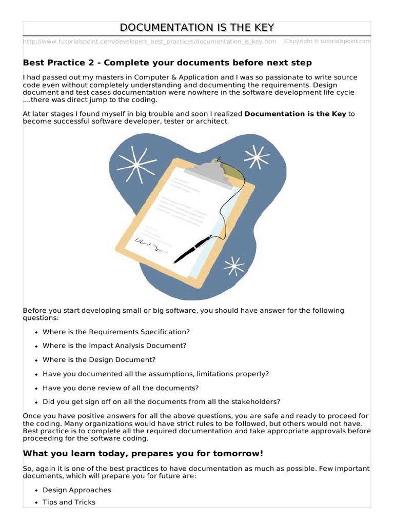 So, again it is one of the best practices to have documentation as much as possible. Few important
