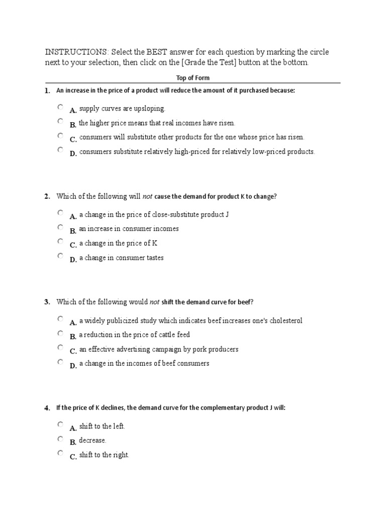 next to your selection, then click on the [Grade the Test] button at the bottom.