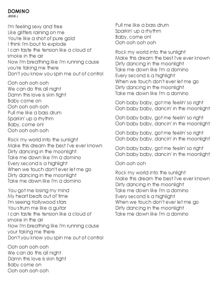 you're taking me there Take me down like I'm a domino