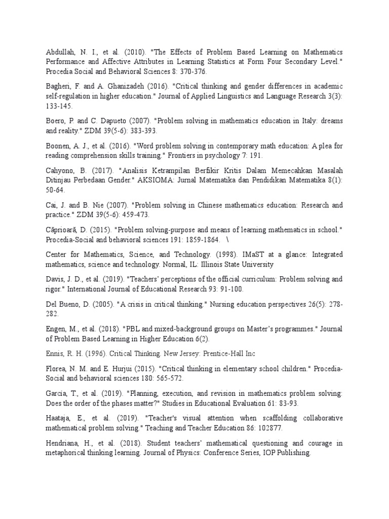 Cahyono, B. (2017). "Analisis Ketrampilan Berfikir Kritis Dalam Memecahkan Masalah