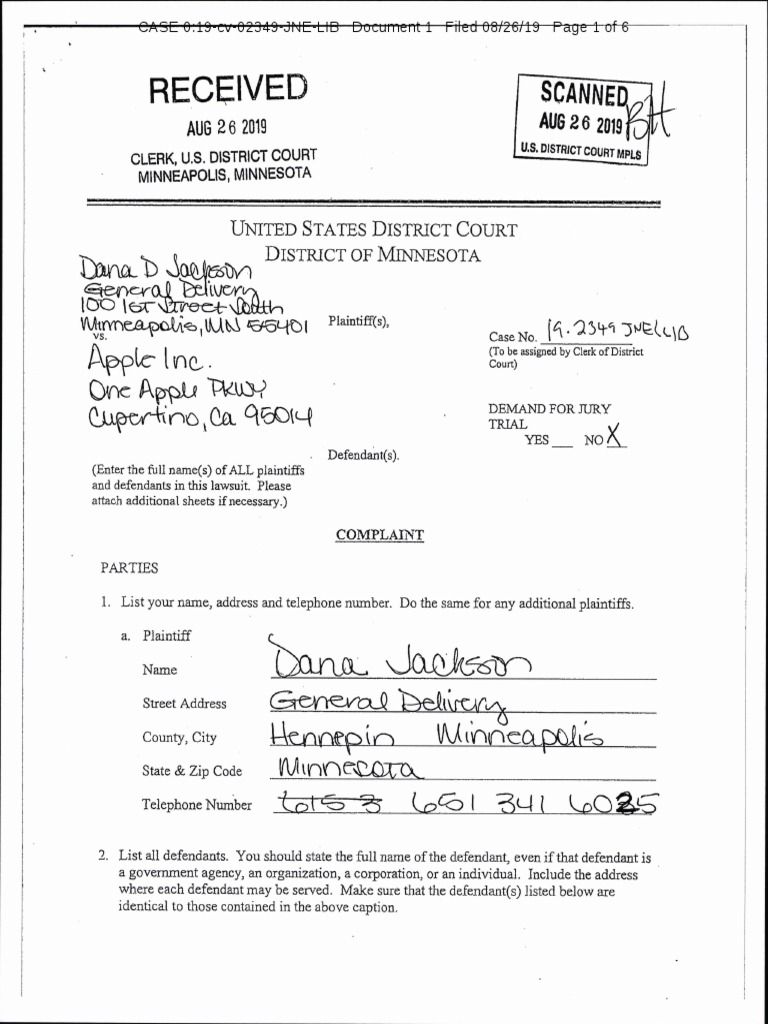 A civil rights lawsuit has been filed against Apple by private citizen Dana D. Jackson of Minneapolis Minnesota. She's demanding $250,000 and other expensed related to Apple confiscating her…