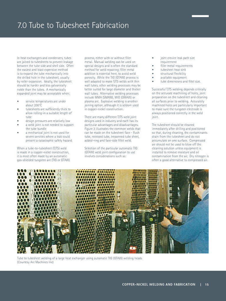 • tubesheets are sufficiently thick to in copper-nickel construction. to make sure the tungsten electrode is