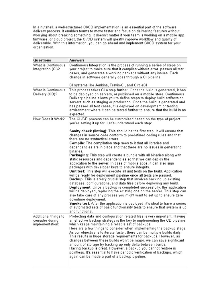 deliverable. With this information, you can go ahead and implement CI/CD system for your