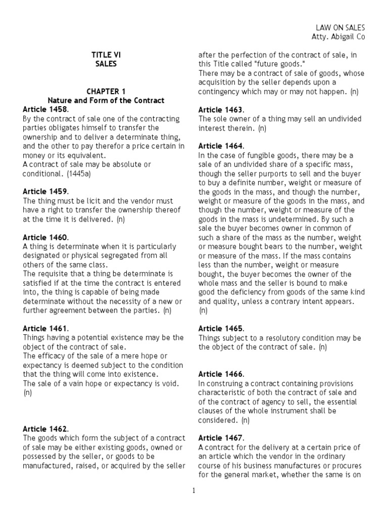 thing shall not pass to the purchaser until he has contract. (1454a)