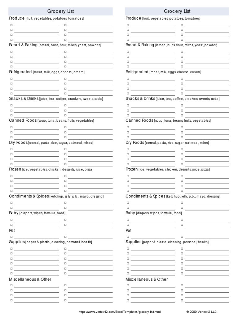 https://www.vertex42.com/ExcelTemplates/grocery-list.html © 2009 Vertex42 LLC