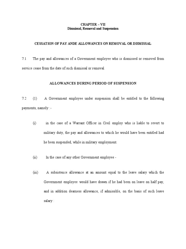 7.1 The pay and allowances of a Government employee who is dismissed or removed from