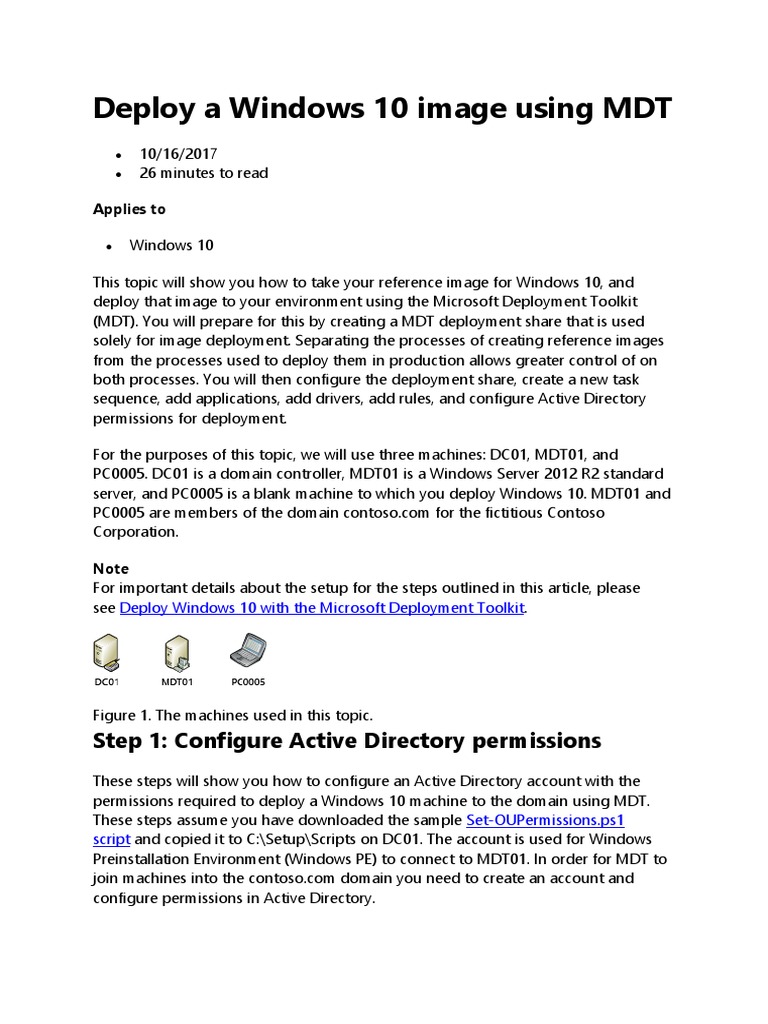 permissions required to deploy a Windows 10 machine to the domain using MDT.