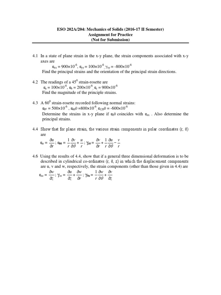 ESO 202A/204: Mechanics of Solids (2016-17 II Semester)
