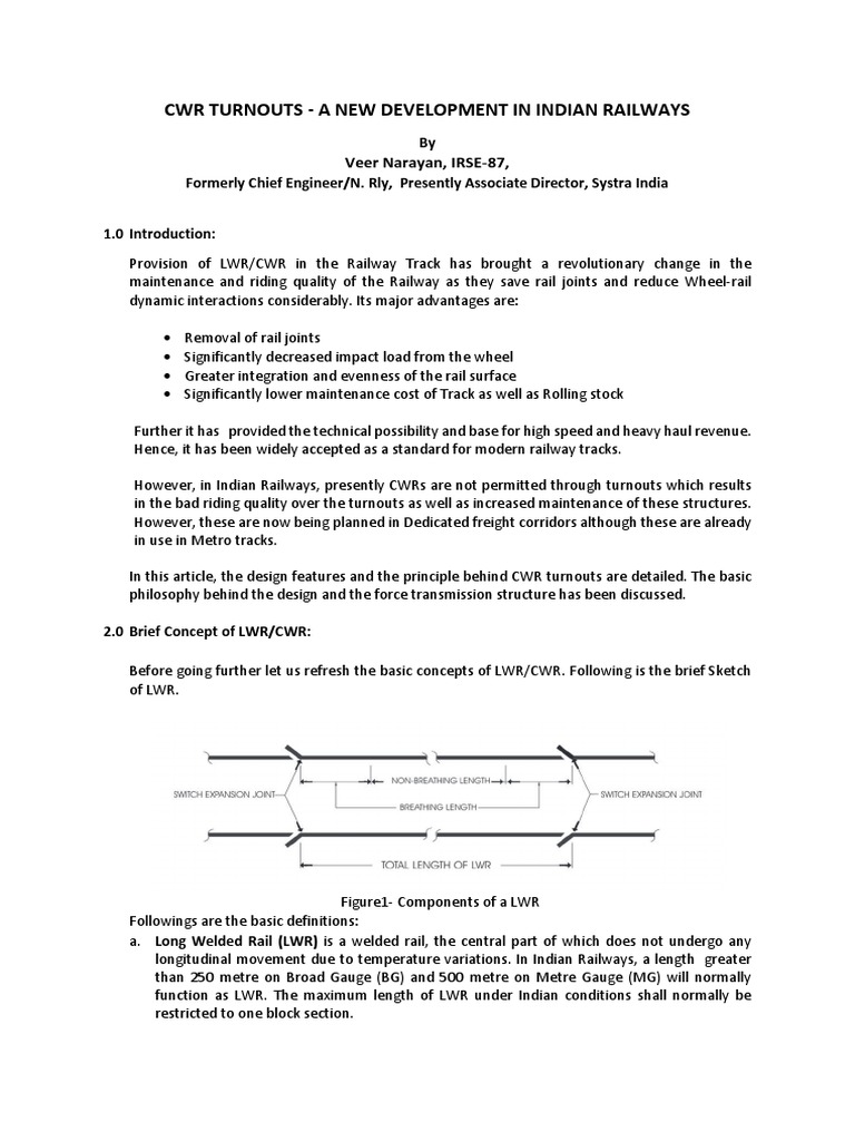 CWR TURNOUTS - A NEW DEVELOPMENT IN INDIAN RAILWAYS