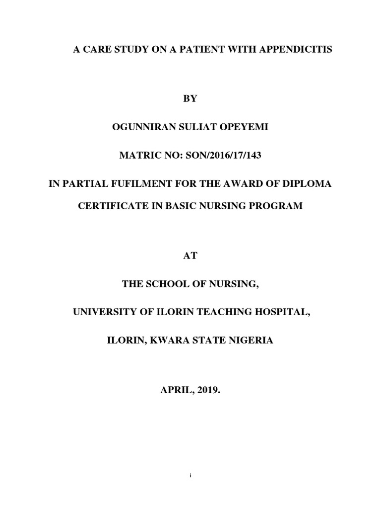 Finally, my thanks go to the CNO of paediatric surgical ward of university of Ilorin Teaching