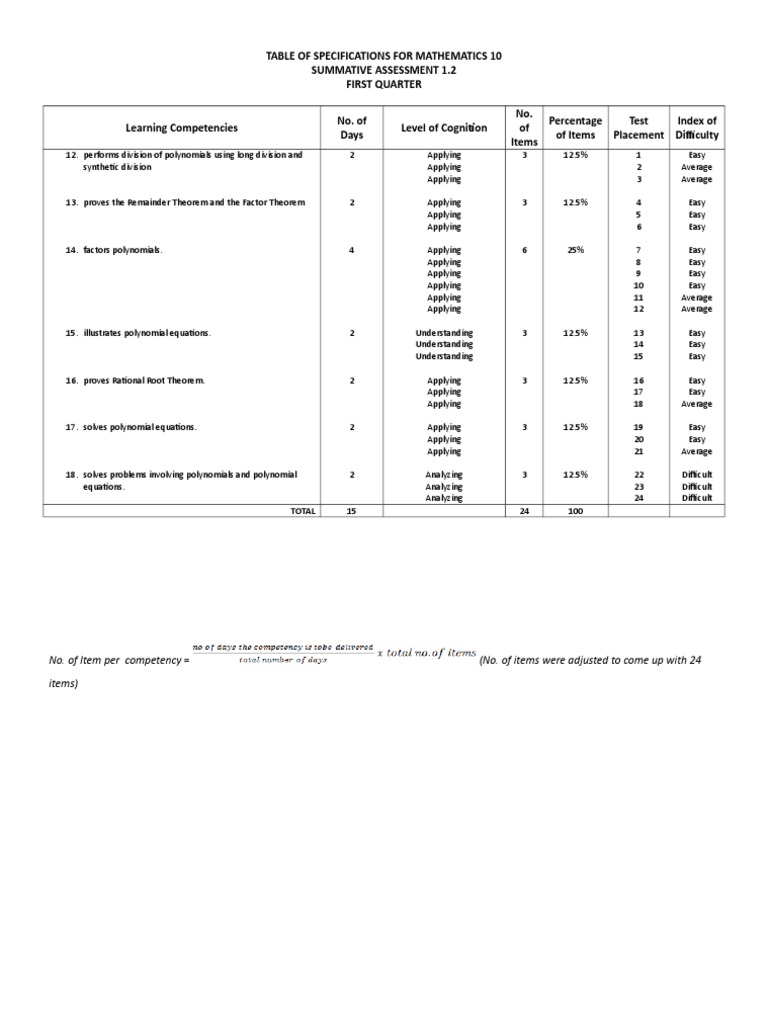 No. of Item per competency = (No. of items were adjusted to come up with 24