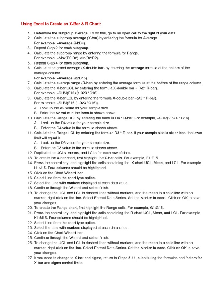27. If you need to change to X-bar and sigma, return to Steps 8-11, substituting the formulas and factors for