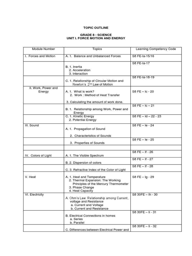 I. Forces and Motion A. 1. Balance and Unbalanced Forces S8 FE-Ia-15/16