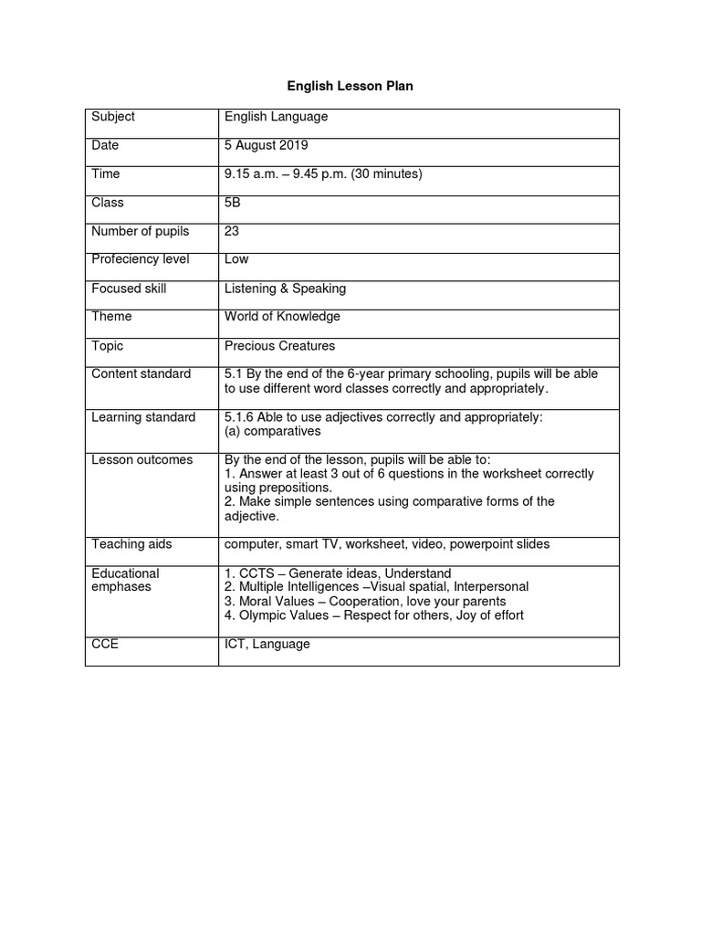Learning standard 5.1.6 Able to use adjectives correctly and appropriately: