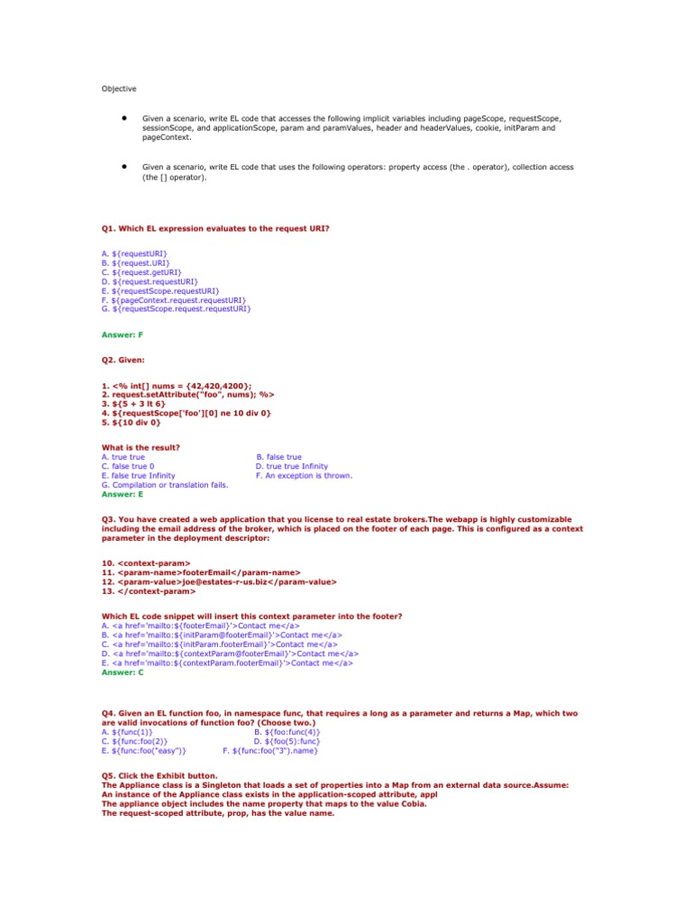 Q1. Which EL expression evaluates to the request URI?