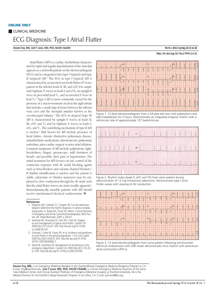 Steven Foy, MD; Joel T Levis, MD, PhD, FACEP, FAAEM Perm J 2014 Spring;18(2):e128