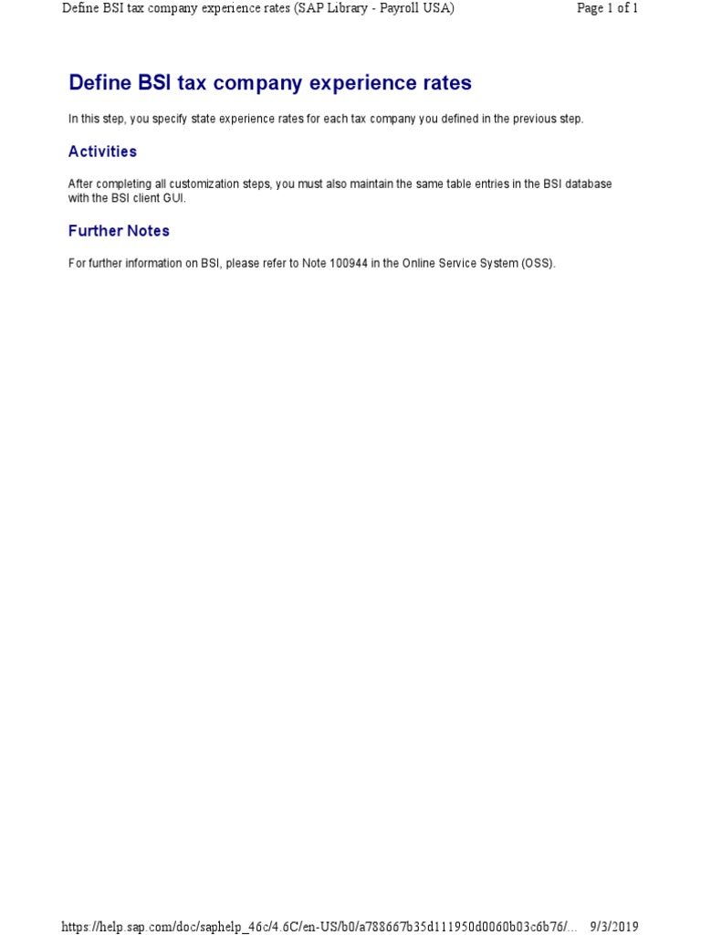 Define BSI tax company experience rates (SAP Library - Payroll USA) Page 1 of 1