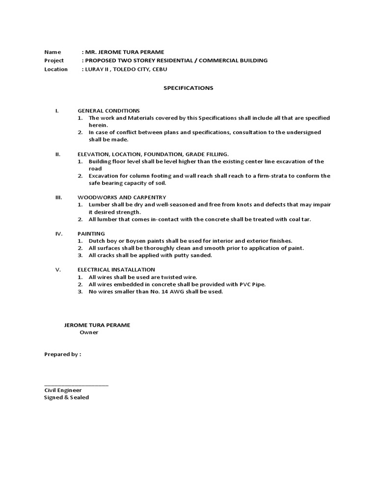 2. In case of conflict between plans and specifications, consultation to the undersigned