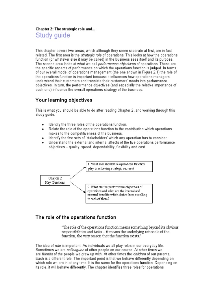 related. The first area is the strategic role of operations. This looks at how the operations
