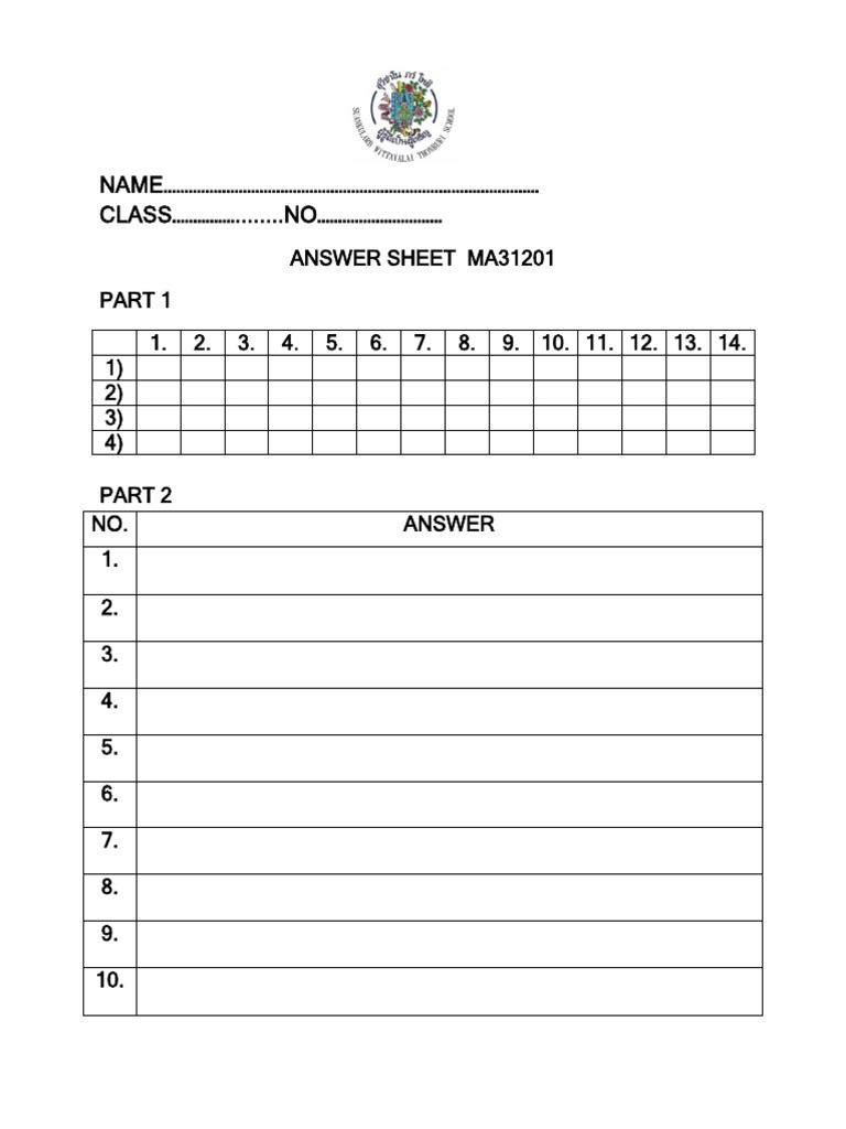 ANSWER SHEET MA31201