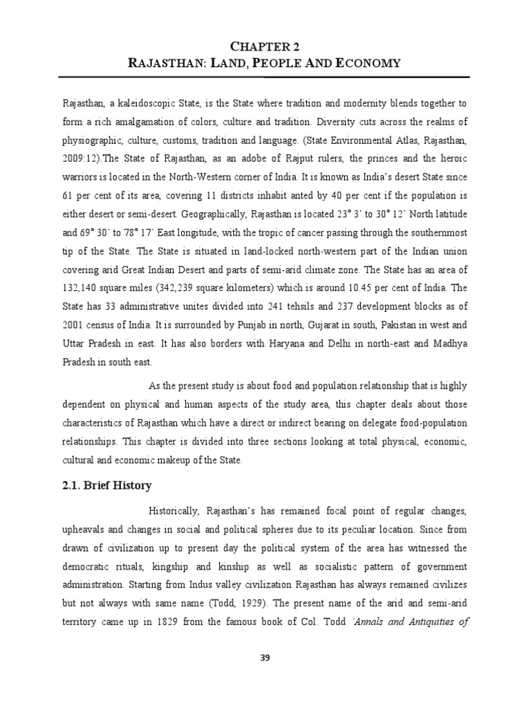 characteristics of Rajasthan which have a direct or indirect bearing on delegate food-population