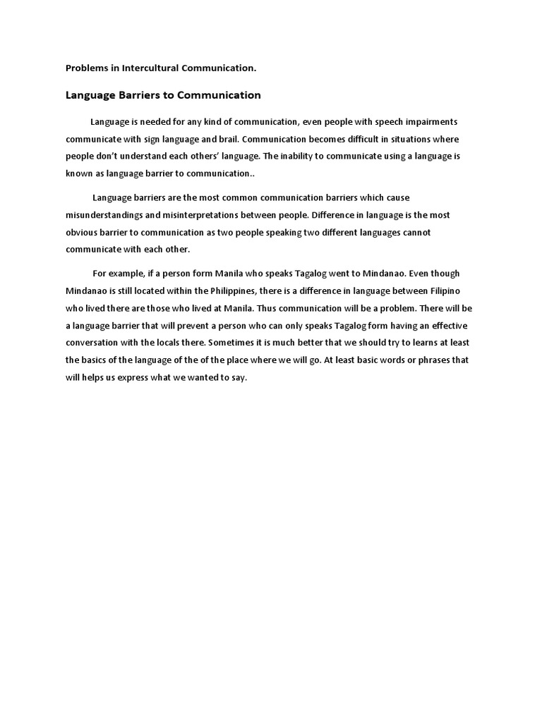 a language barrier that will prevent a person who can only speaks Tagalog form having an effective