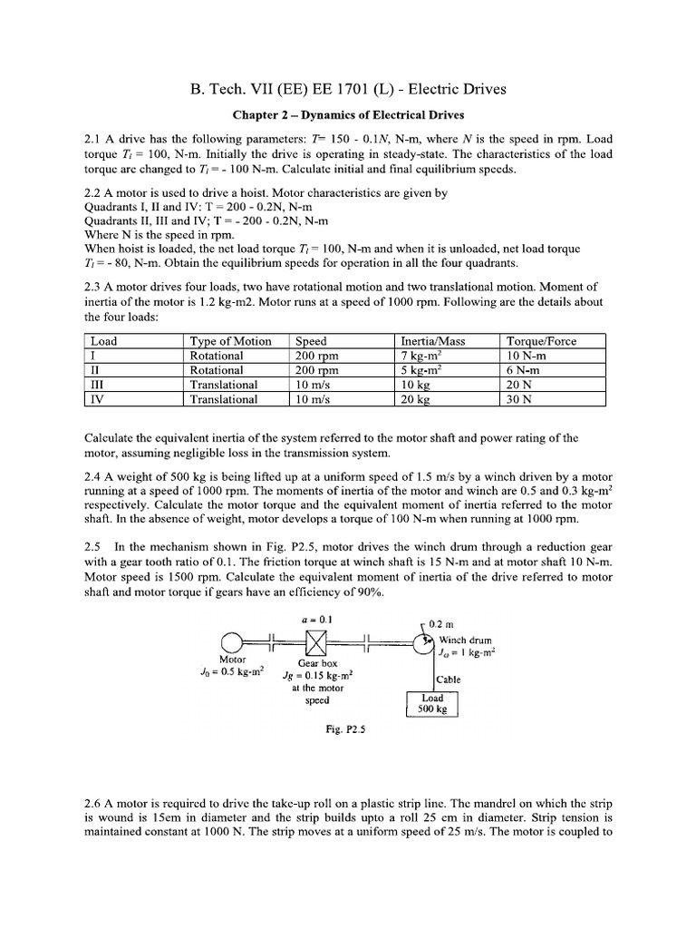 2.25 Solve Problem 2.24, when the motor has speed torque characteristic such that from no load to