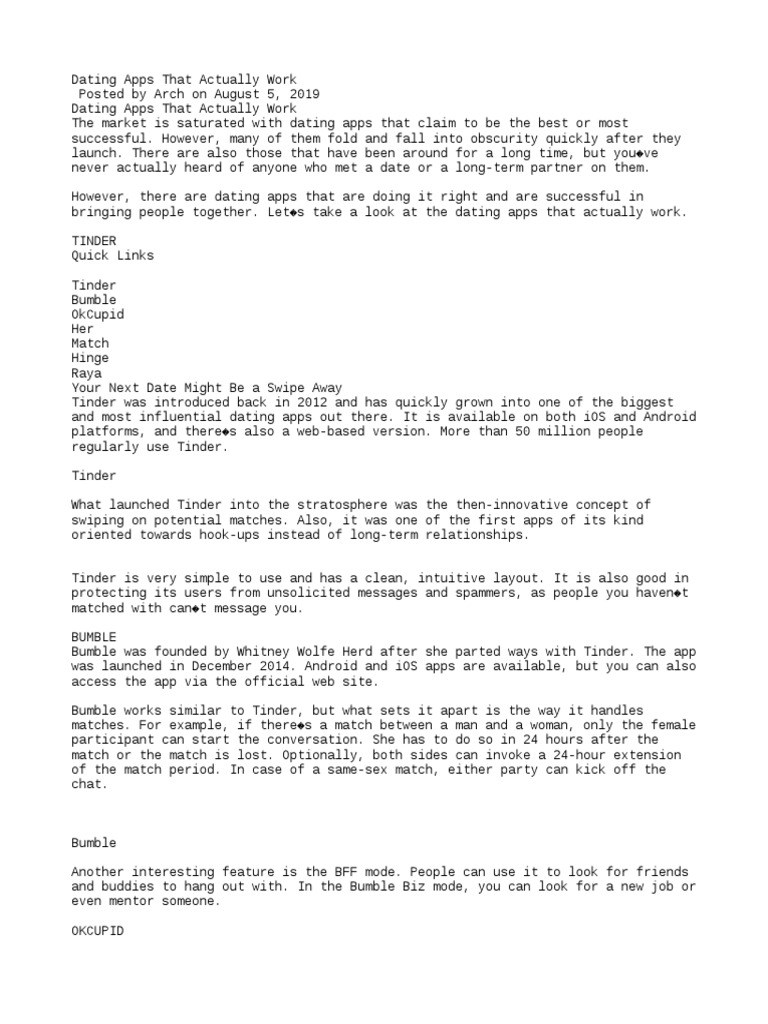 bringing people together. Let�s take a look at the dating apps that actually work.