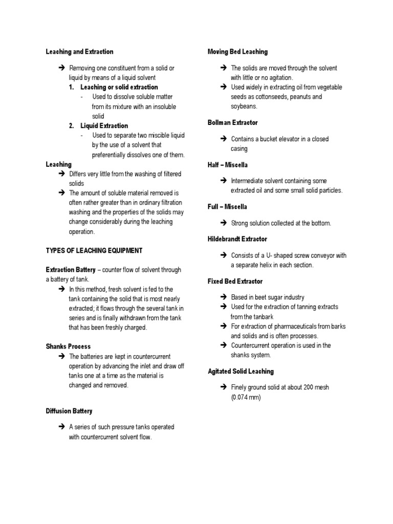 1. Leaching or solid extraction Used widely in extracting oil from vegetable