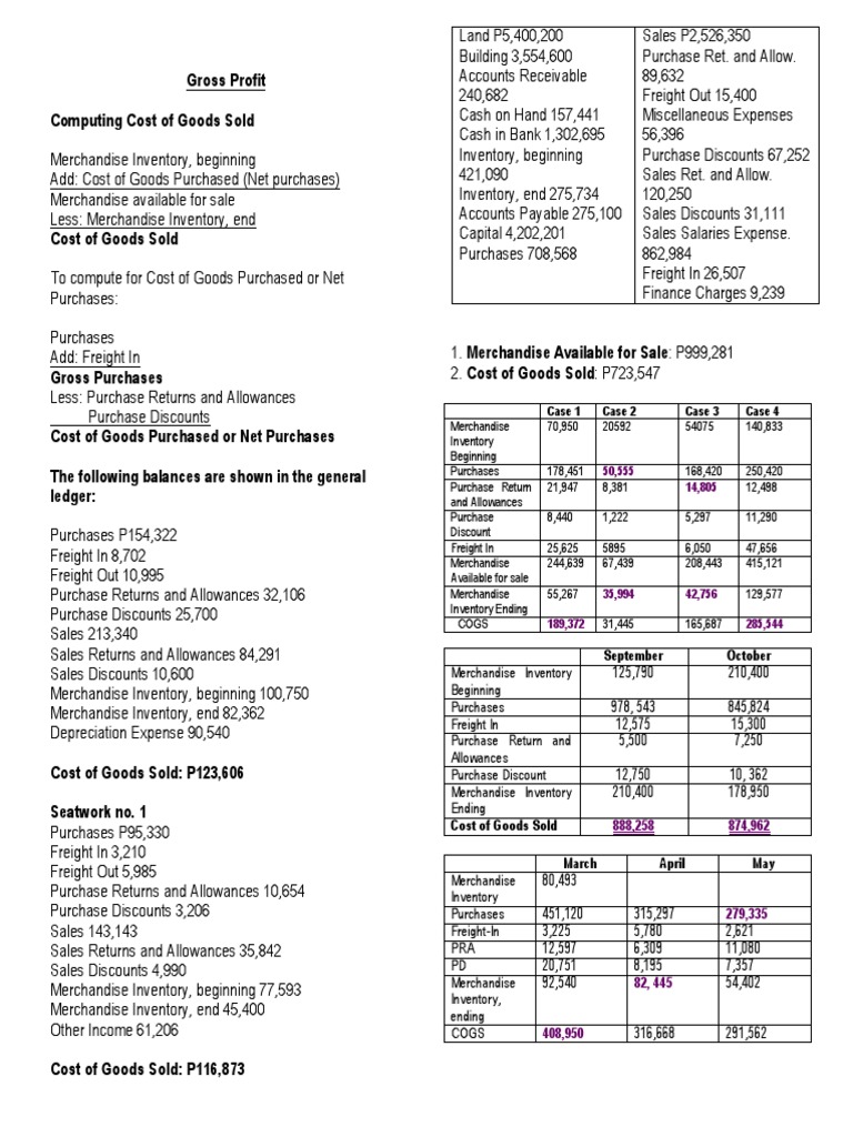 Case Ex. Compute for Net sales, COGS, and Gross Profit