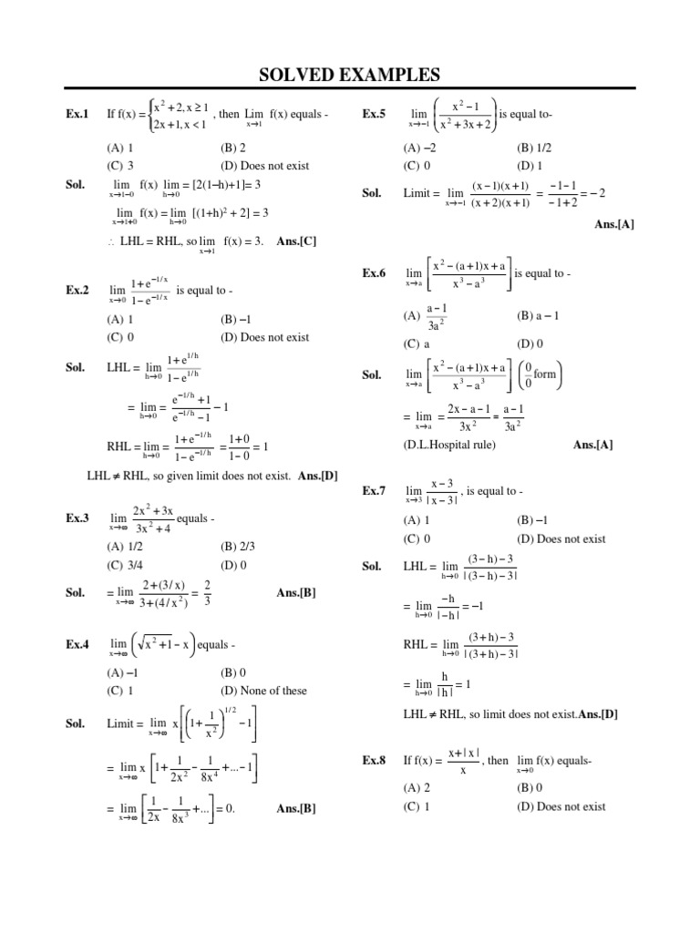 Ex.3 lim equals - (A) 1 (B) –1